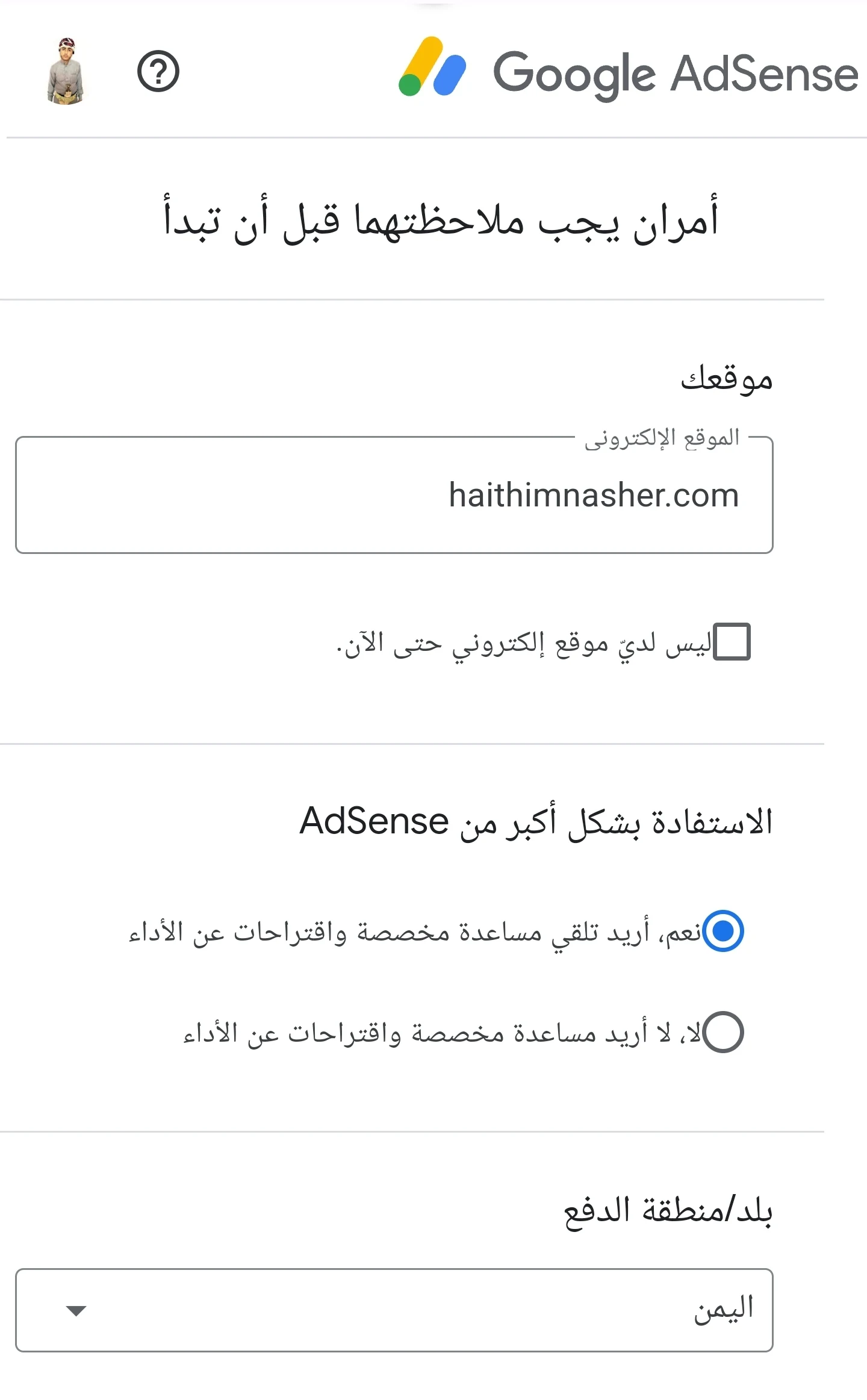 ٨. حدّد خيار "الاستفادة بشكل أكبر من AdSense" نعم أو لا.